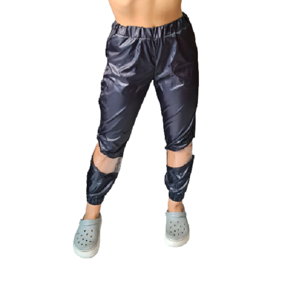 Babucha de sire con recortes cristal, negra, talle 36 (i060919)