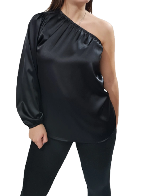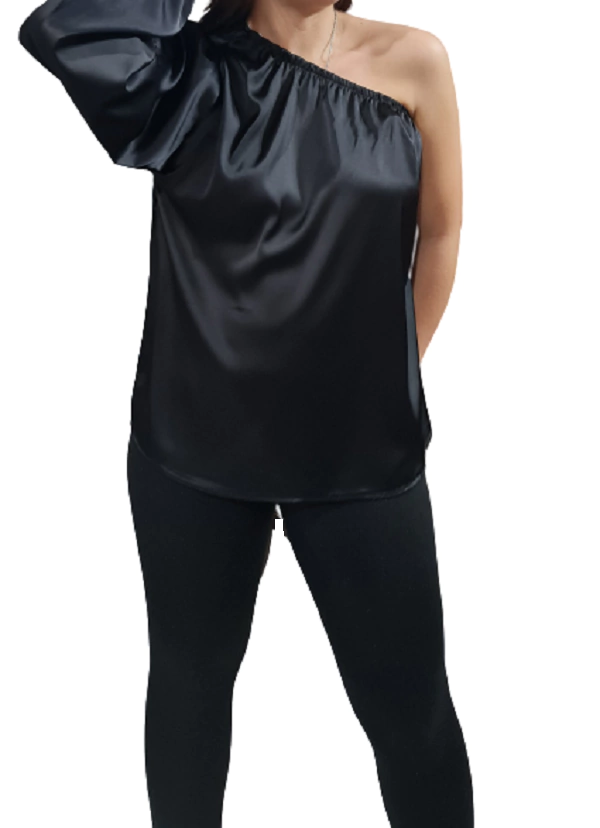 Camisola irregular de raso, negra, talle S/M (st160223)