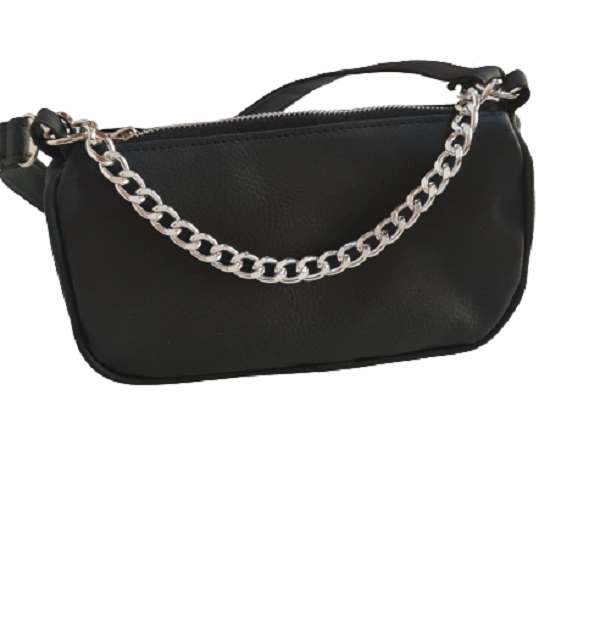 Cartera en cuero ecologico con cadena, negra (on050323)