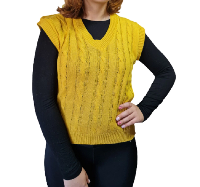 Chaleco de lana trenzado, mostaza, talle unico (lj010421)