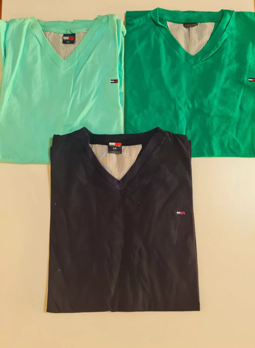 Pack x 3 remeras manga corta, escote V, acqua+ azul + verde, talle XXL(m020921)