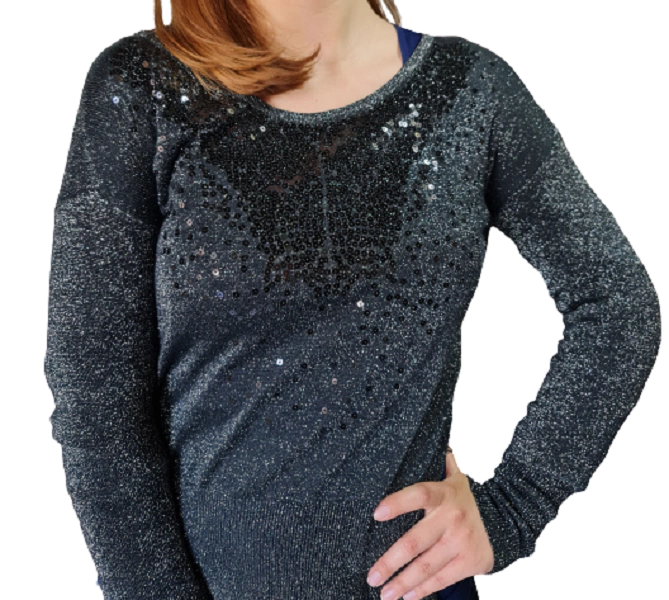 Sweater de hilo y lycra, negro, con lurex y detalles de lentejuelas, talle unico (a150316)